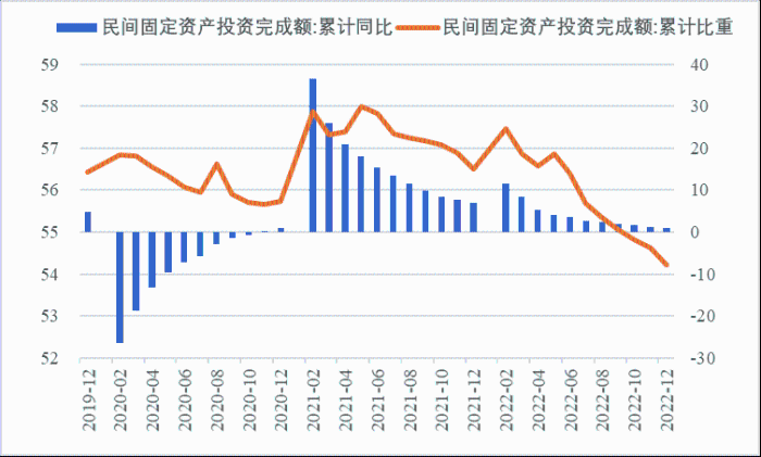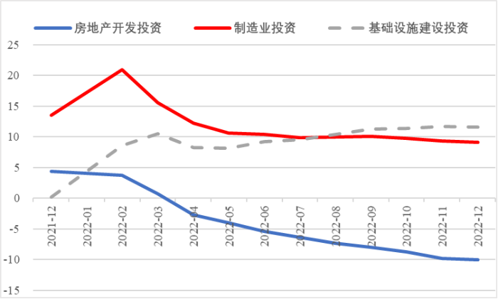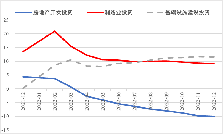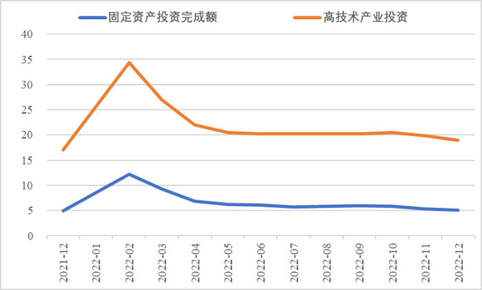 2022年,面對復雜嚴峻的國際環境和國內疫情挑戰,我國投資整體表現較強韌性,對穩定經濟基本盤發揮了壓艙石作用?;A設施和部分制造業成為穩投資的重點領域,中西部地區投資增長動能強勁。同時,制造業承壓加劇、房地產投資下行、地方債高壓、社融需求走弱等突出問題制約投資持續穩定增長,穩投資壓力仍然較大。做好2023年投資促進工作,關鍵是把擴大有效投資同優化供給結構有機結合起來,持續擴大高技術產業投資,多舉措穩定房地產投資,更好發揮政府投資的引導作用,充分釋放社會投資需求潛能。 一、固定資產投資整體運行情況 (一)整體投資韌性超出預期,民間投資呈下行趨勢 2022年1—12月,我國固定資產投資(不含農戶,下同)572138億元,同比增長5.1%。一季度投資增速達到9.3%的年內高點,上半年、前三季度分別降至6.1%、5.9%,年初投資增速較高的重要原因是2022年專項債部分限額提前下達等系列政策發揮效果,之后受國外地緣政治沖突、國內疫情多點散發等因素影響,投資增速有所下降,但降幅逐季收窄。一季度、上半年、前三季度、全年固定資產投資增速分別較同期國內生產總值增速高了4.5個、3.6個、2.9個和2.1個百分點,投資成為當前穩定宏觀經濟大盤的關鍵力量。 圖1 全國固定資產投資增速 (累計同比,%) 數據來源:國家統計局 1—12月,我國固定資產投資三年平均增速為4.3%,低于2019年同期1.1個百分點,全面恢復到疫情前水平仍需一定時間。尤其是民間投資受疫情沖擊較為嚴重,復蘇難度較大。一季度、上半年、前三季度、全年民間投資分別同比增長8.4%、3.5%、2%、0.9%,低于整體投資增速0.9個、2.6個、3.9個、4.2個百分點,與整體投資增速的差距逐季拉大。從占比看,截至12月底民間投資累計占固定資產投資的比重已降至54.2%,低于2019年同期2.2個百分點。 圖2 民間投資增速及占比(%) 數據來源:國家統計局,Wind數據庫 (二)基礎設施、制造業投資支撐作用明顯,房地產市場持續低迷 制造業投資在外需帶動和政策支撐下展現較強韌性,2022年1—12月制造業投資同比增長9.1%,比整體投資高4個百分點。在內需受疫情影響明顯收縮的情況下,制造業投資超預期增長很大程度上得益于外需對出口的拉動。我國全年貨物出口額累計同比增長10.5%,裝備制造、消費品制造等領域海外訂單持續旺盛,機電產品占進出口總額的49.1%,汽車出口大幅增長82.2%。技改投資繼續發揮對制造業投資的拉動作用。1—11月,制造業企業技改投資同比增長9.1%,占全部制造業投資的比重達40.9%。 基礎設施投資在增加政策性開發性金融工具額度、用好專項債等融資支持政策以及各地區各部門積極貫徹落實穩增長系列政策推動下,連續8個月回升,1—12月同比增長9.4%,高于全部投資增速4.3個百分點。其中,水利管理業投資和公共設施管理業投資分別大幅增長13.6%、10.1%。 表1 1-12月我國各行業固定資產投資情況 2022年受需求走弱影響,房地產開發投資增速持續放緩,一季度僅同比增長0.7%,二季度開始滑落至負增長區間。1—12月我國房地產開發投資同比下降10%,降幅較前三季度、上半年分別擴大2個、4.6個百分點,跌幅持續加深,拖累固定資產投資整體增長。房企土地購置費、施工面積、新開工面積等指標均出現持續大幅下降。1—12月,房地產開發景氣指數均位于100以下,且自2月以來持續走低。 圖3 三大領域固定資產投資增速 (累計同比,%) 數據來源:國家統計局,Wind數據庫 高技術產業投資引領作用持續增強。在投資整體下行壓力加大的情況下,高技術產業投資逆勢而上,穩投資引領作用持續顯現。2022年高技術產業投資同比增長18.9%,比全部投資增速高13.8個百分點。分類別看,高技術制造業投資同比增長22.2%,比制造業整體投資高了13.1個百分點,其中電子及通信設備制造業投資增長27.2%,醫療儀器設備及儀器儀表制造業投資增長27.6%,電子、醫藥制造業投資大幅增加;高技術服務業投資同比增長12.1%,其中科技成果轉化服務業投資增長26.4%,研發設計服務業投資增長19.8%,企業研發投入顯著加大。 圖4 高技術產業投資增速對比整體投資增速 (累計同比,%) 數據來源:國家統計局,Wind數據庫 (三)中西部地區投資增長動力較強,東北地區增速止跌回升 2022年1—12月,東部地區投資同比增長3.6%,較前三季度、上半年、一季度分別回落0.7個、0.9個、5.9個百分點;中部地區投資增長8.9%,較前三季度、上半年、一季度分別回落1.1個、1.8個、5.5個百分點;西部地區投資增長4.7%,較前三季度、上半年、一季度分別回落2個、3.3個、6.6個百分點;東北地區投資增長1.2%,較前三季度、上半年、一季度分別提升1個、2.1個、2.6個百分點??偟膩砜?,中部和西部地區投資保持較快增長,東部地區增速較低,東北地區投資在上半年負增長的基礎上止跌,呈恢復增長態勢。 圖5 分地區固定資產投資增速 (累計同比,%) 數據來源:國家統計局,Wind數據庫 1—11月,31個省份中有16個省投資增速高于全國水平,其中內蒙古、湖北、寧夏、甘肅等4省實現兩位數增長,增速分別達19.8%、15.1%、10.3%、10.2%,投資恢復動力較強。西藏、天津、青海、吉林、海南、貴州、上海、廣東、廣西等9省出現負增長,分別同比下降23.6%、10.4%、7.8%、3.6%、3%、3%、2.6%、2.6%、0.6%。 表2 1-11月全國各省固定資產投資情況 二、投融資領域存在的主要問題 (一)制造業生產需求兩端進一步走弱 2022年12月國
