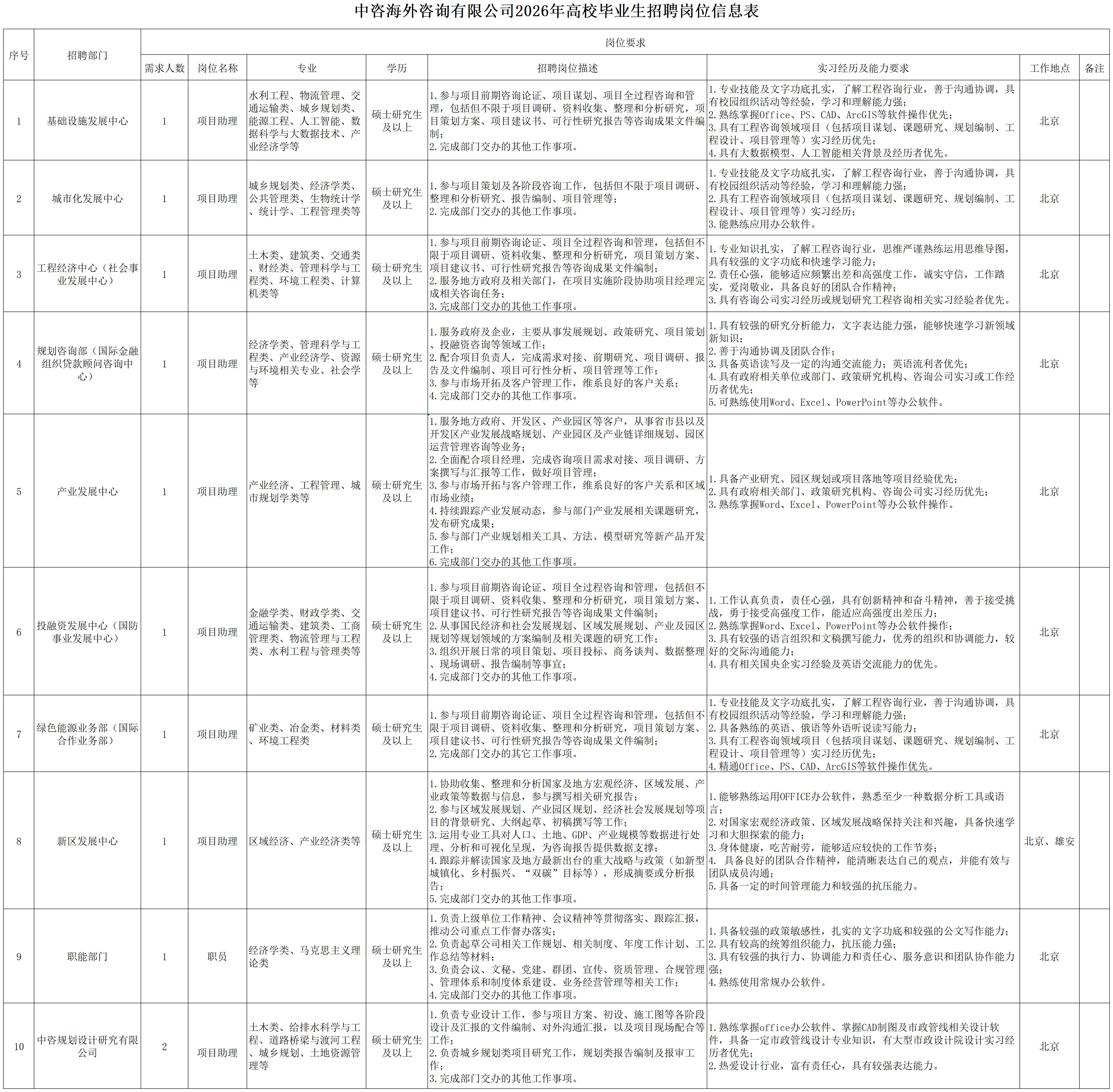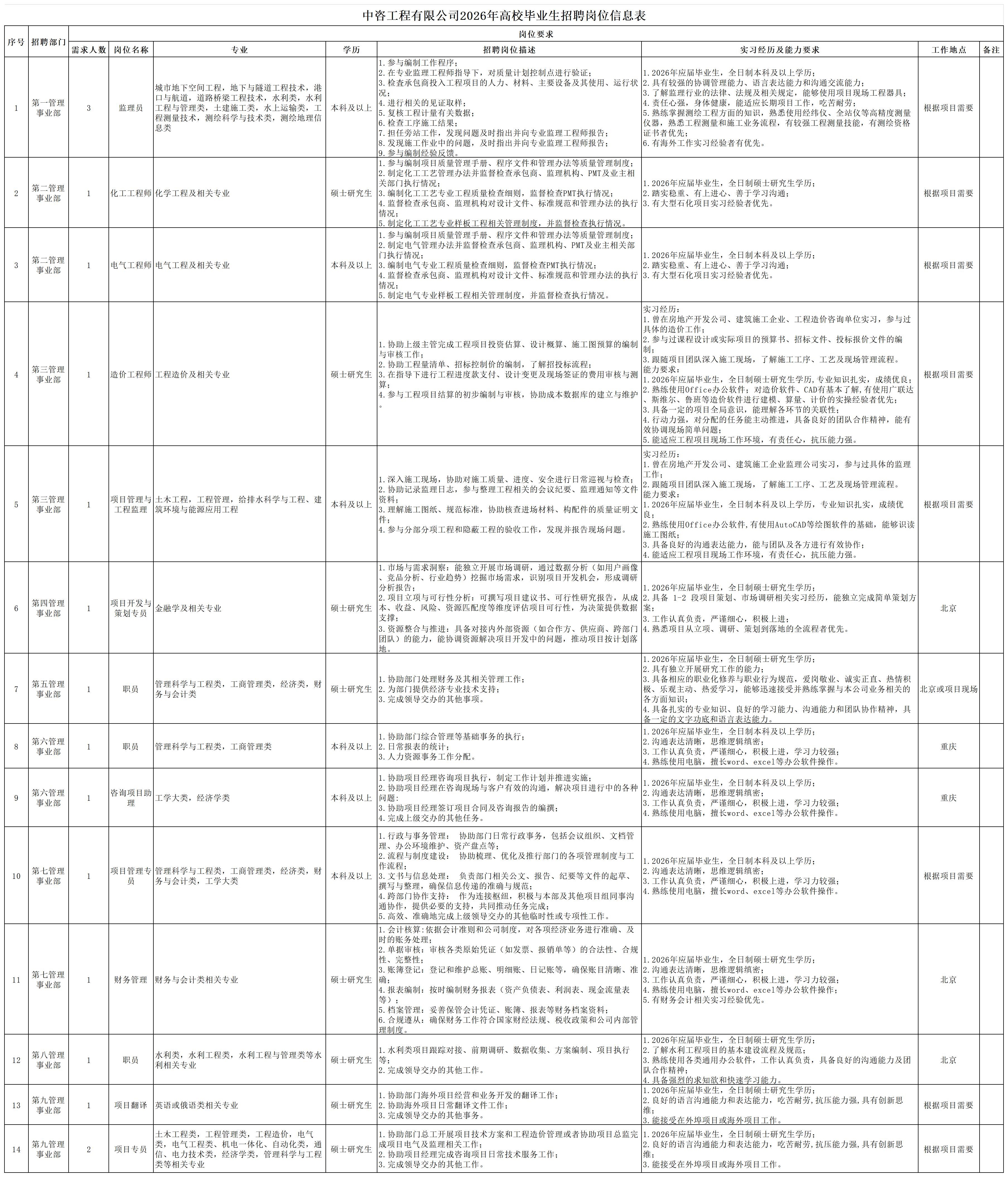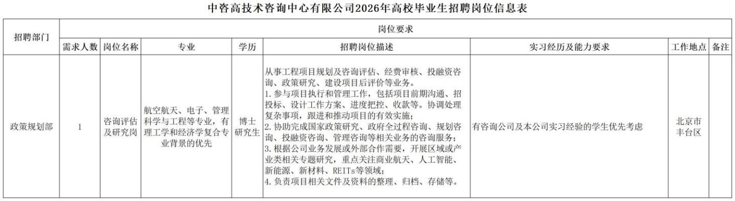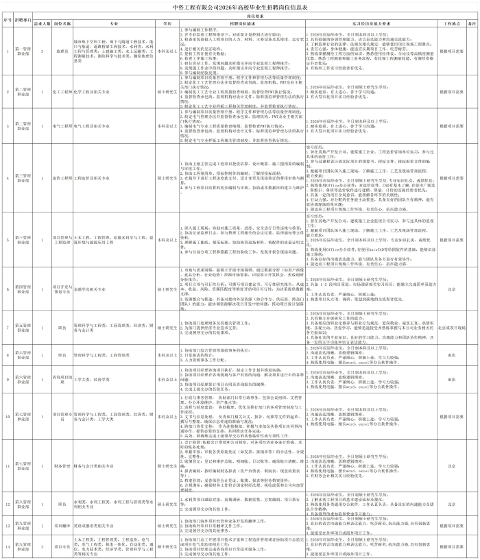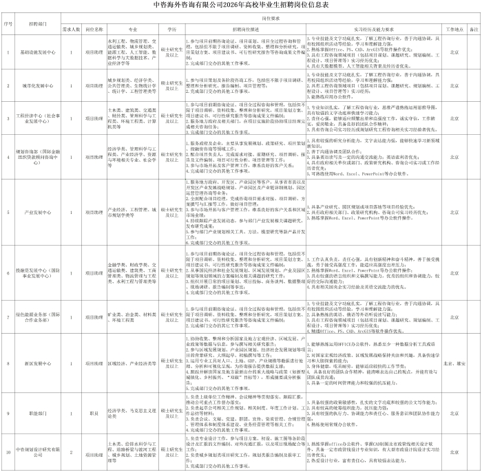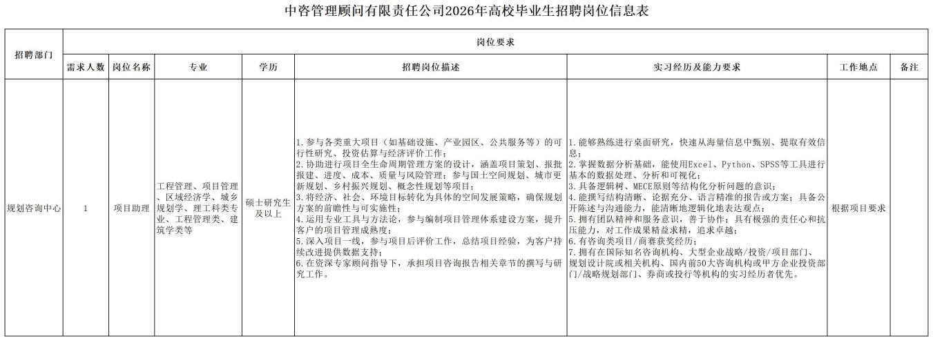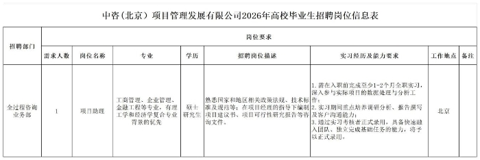 中國國際工程咨詢有限公司所屬企業2026年校園招聘公告 | ||||