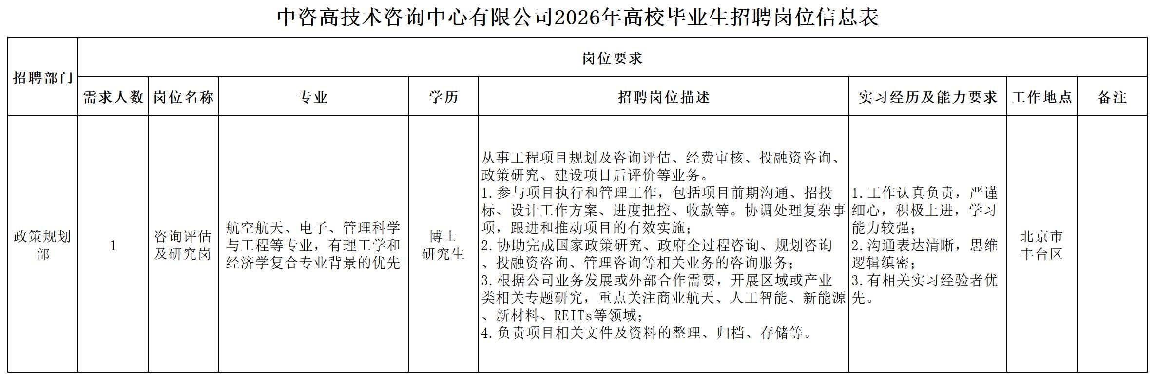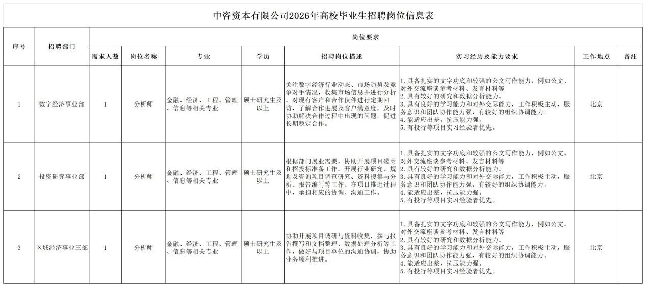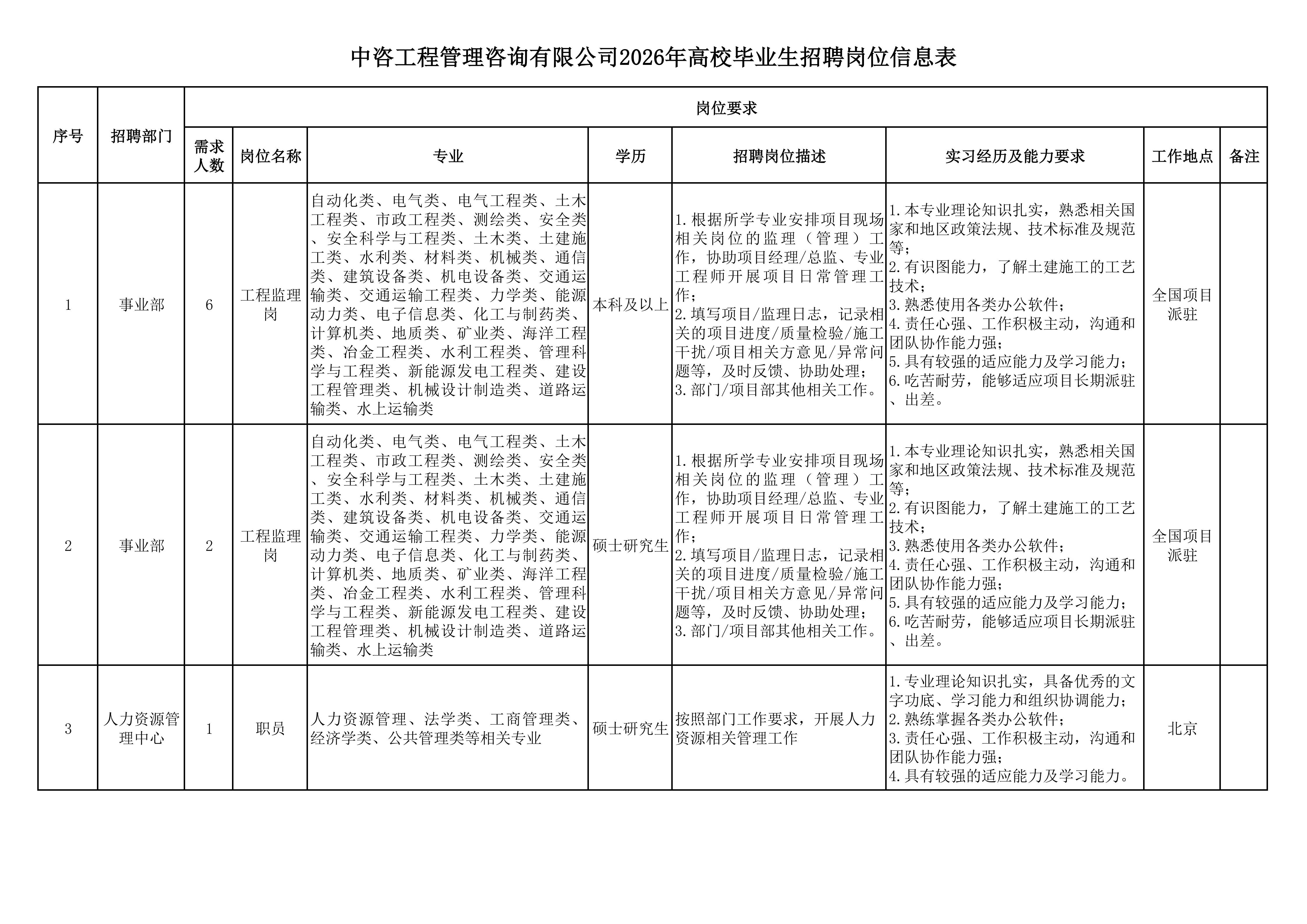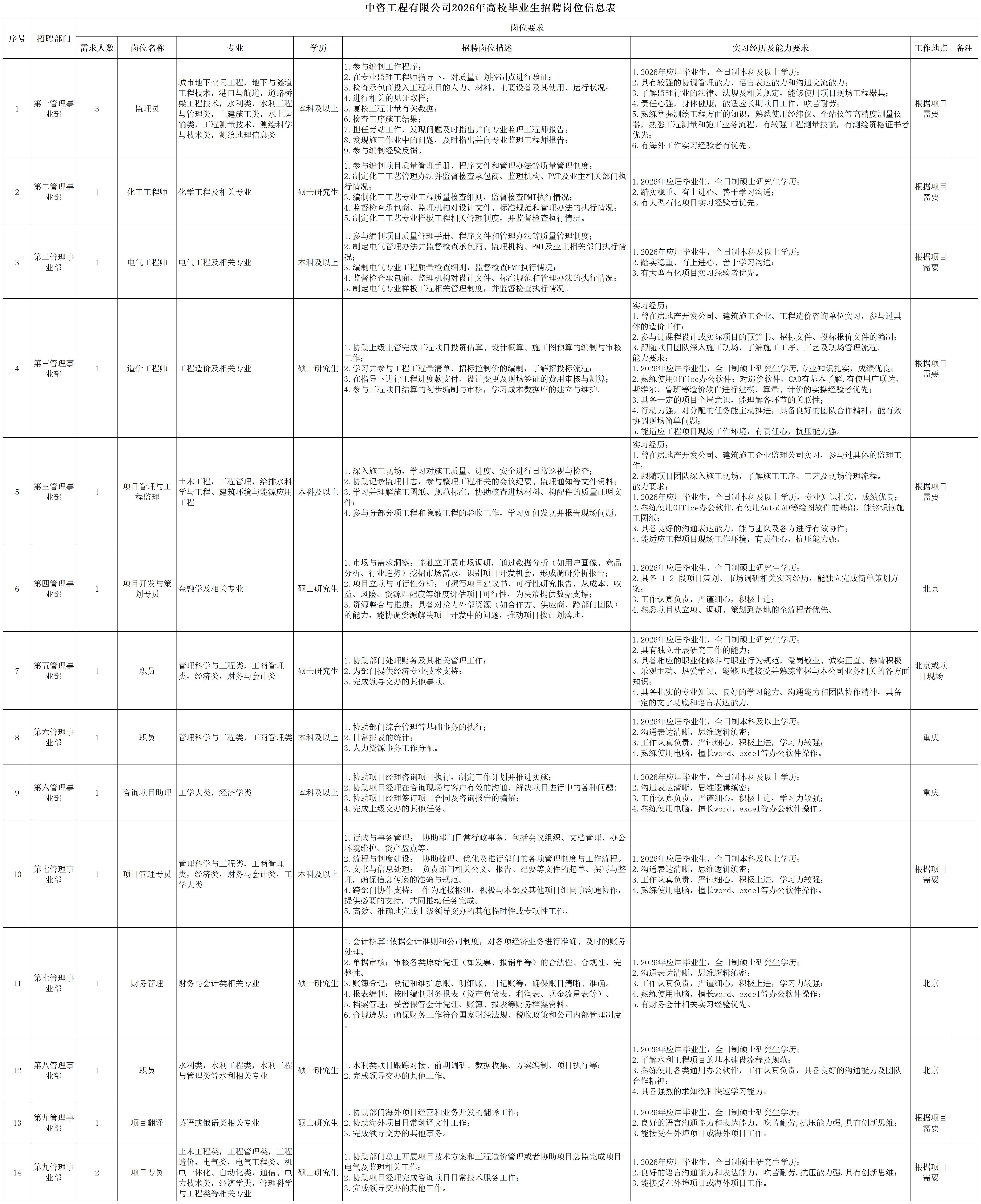 中國國際工程咨詢有限公司所屬企業2026年校園招聘公告 | ||||